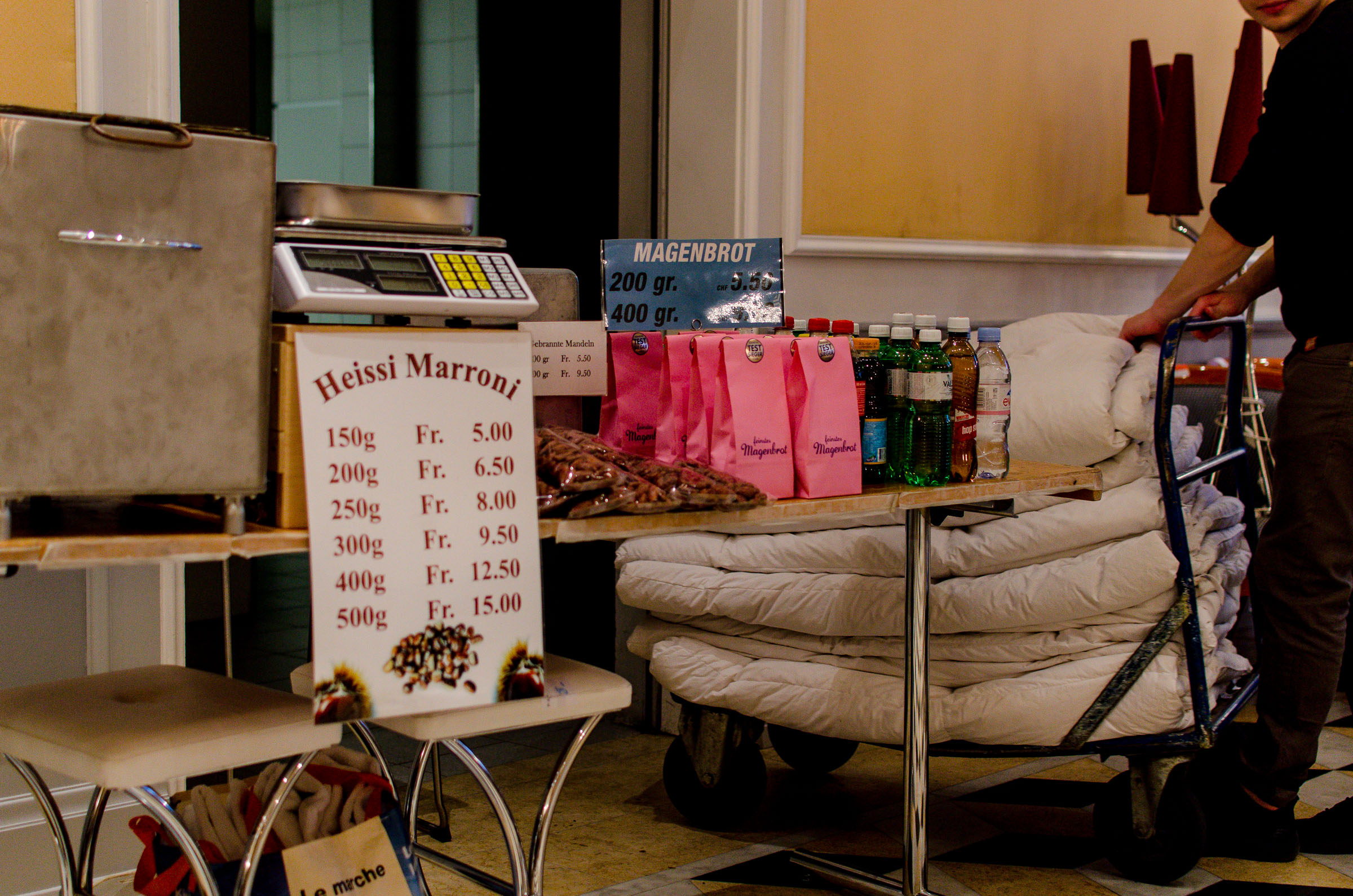 Heute gibt es nicht mehr viel zu essen. Marroni und Getränke werden angeboten.