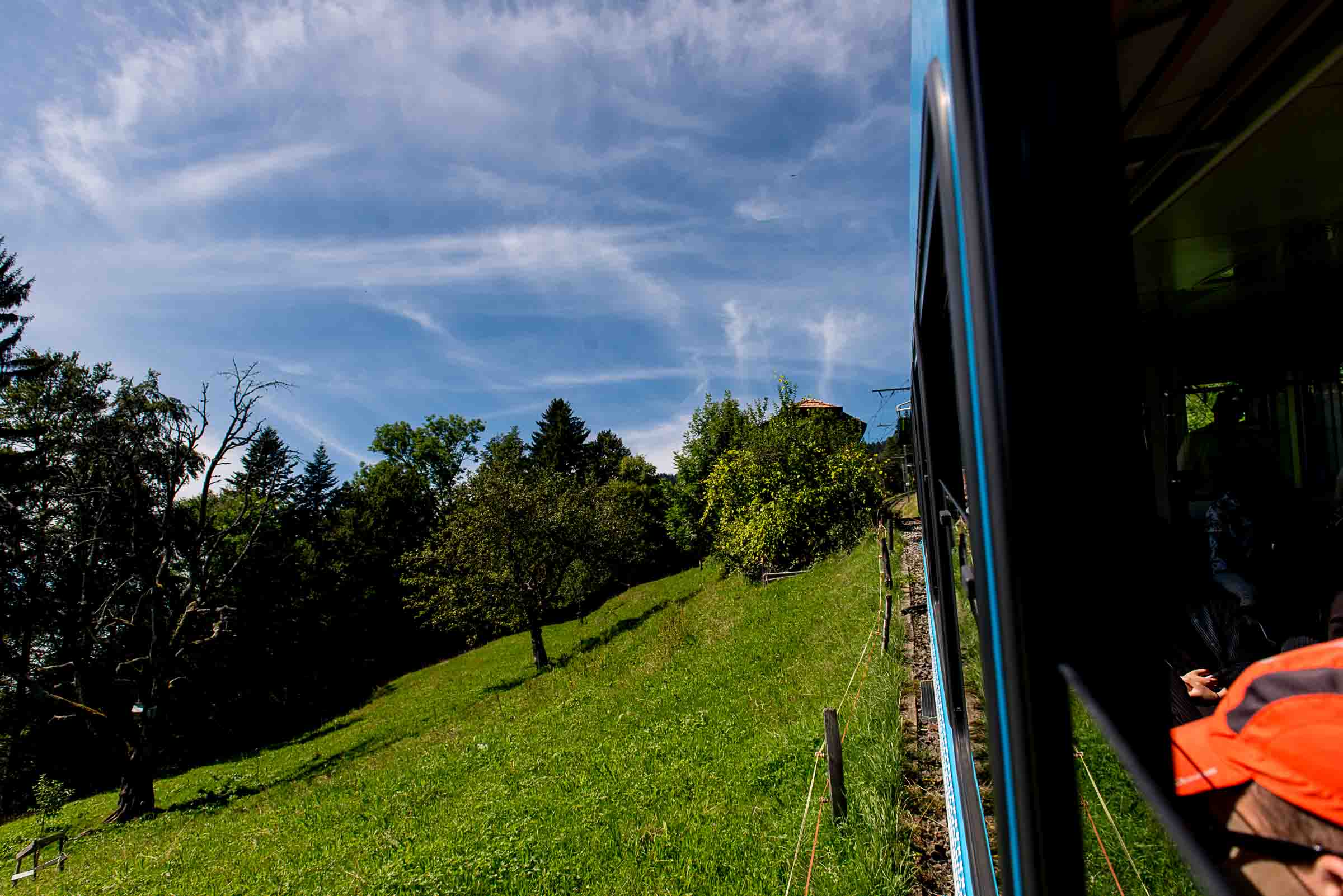 Dann folgt die Durchsage wegen Stellwerkstörung und so, nein, nicht im SBB Slang, es gibt ein technisches Problem und der nachfolgende Rote wird bald zu uns stossen und wir können auf offenem Feld umsteigen. Eine Dame fragt:"Kann man auch zu Fuss weitergehen?" Ja, aber bis Kaltbad sicher noch eine halbe Stunde, was ihr dann zu lange ist.