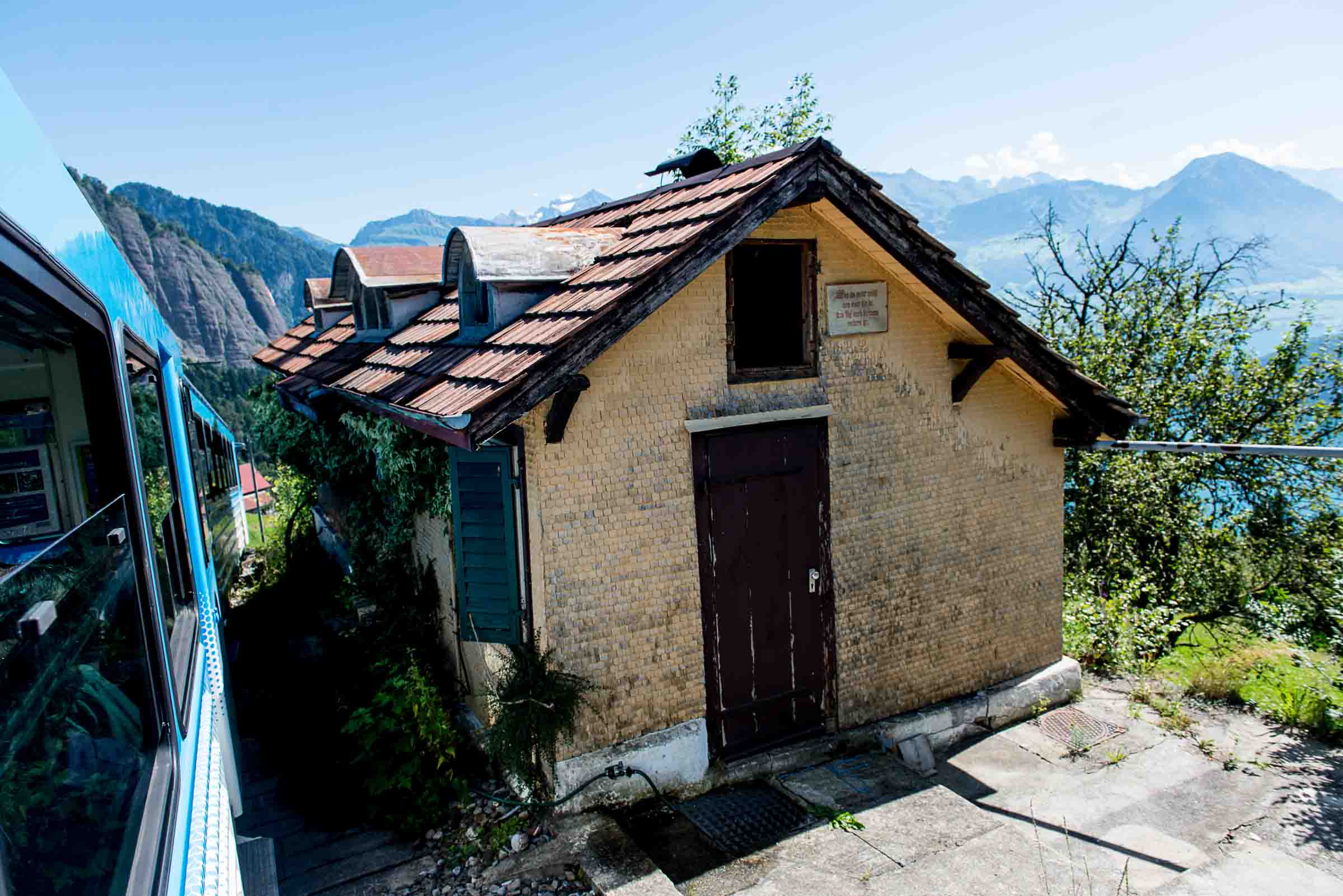 Die Bahn hält nochmals an der Station Rigi Staffel und fährt zur Bestform auf, vorbei an einem 2 m neben dem Gleis stehenden Berghaus, das hier noch ein grosses Fest beheimatet und natürlich vom Zug mit einem Pfiff begrüsst wird, den Berg hinauf.