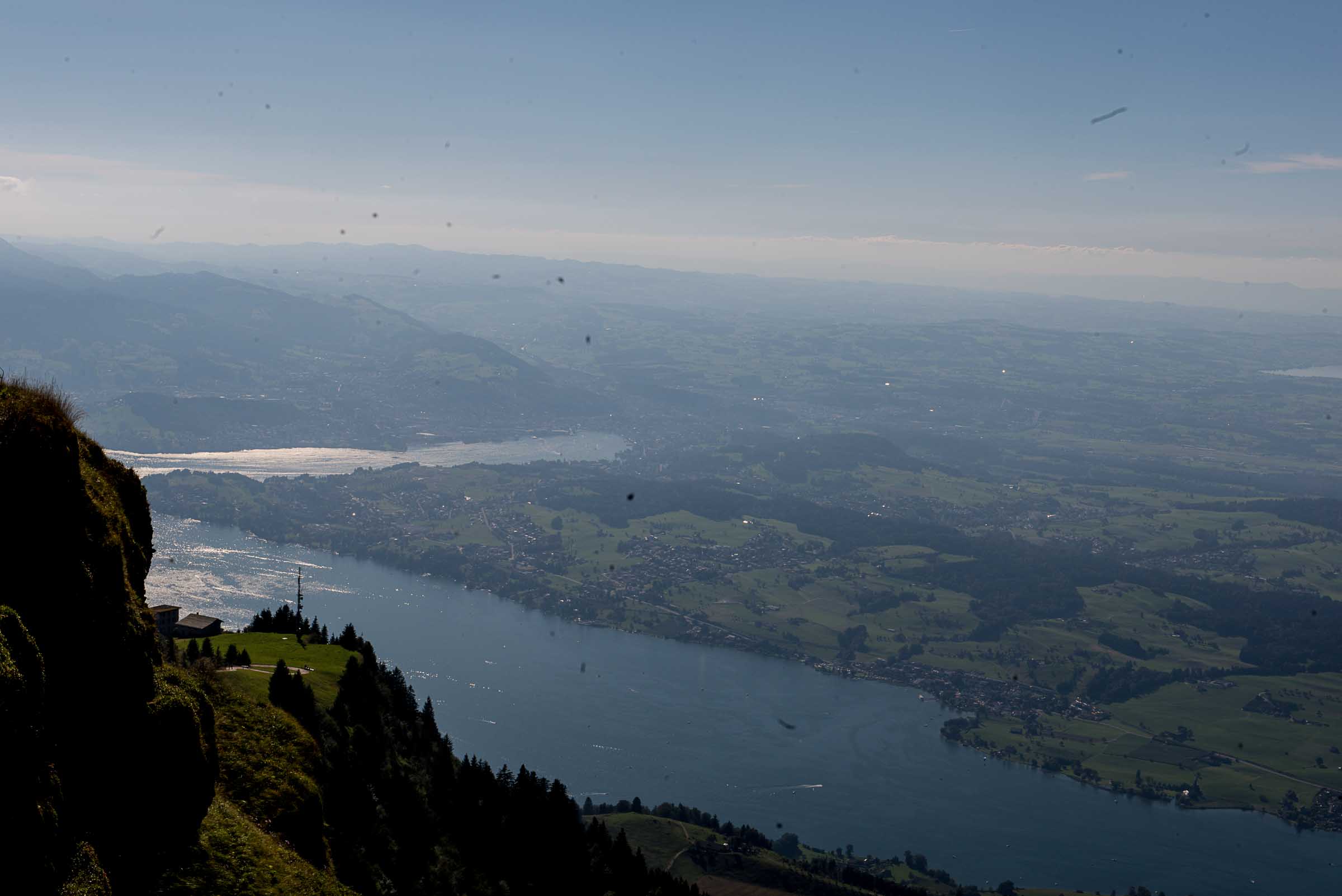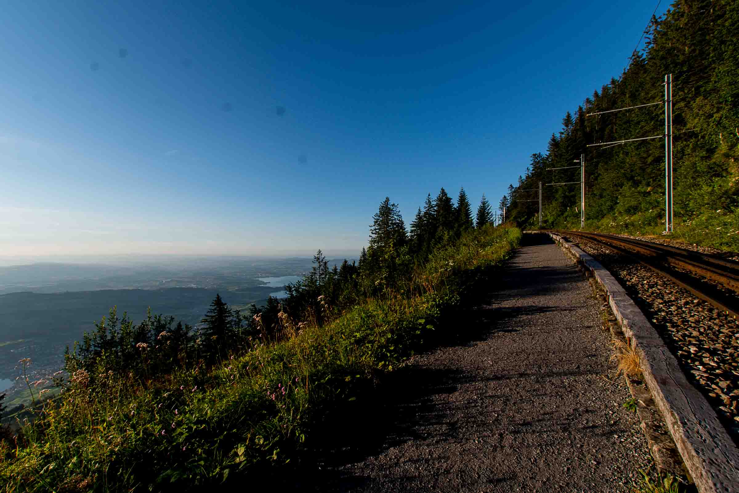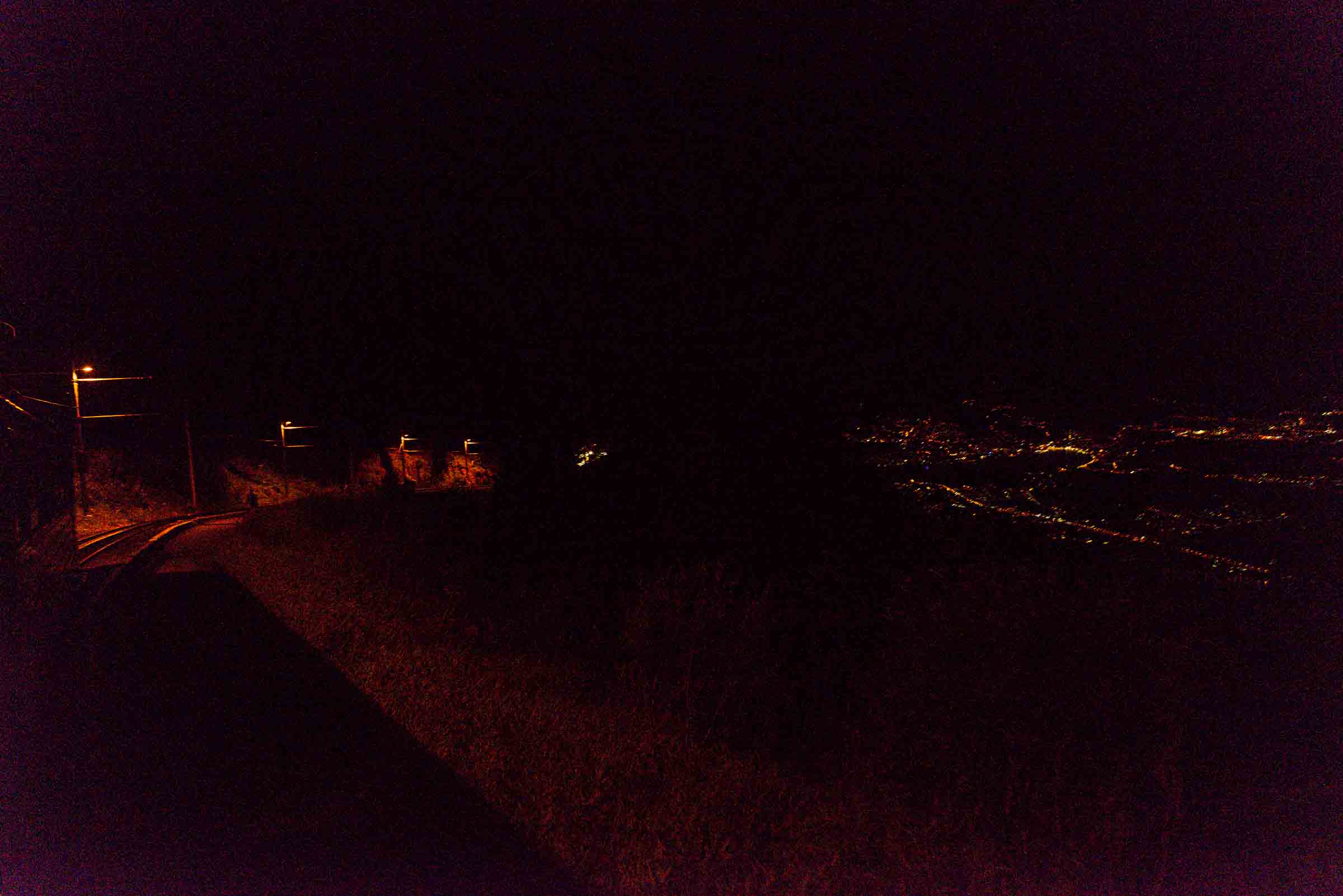 Im Wagen ist das Licht aus. Der Wagen fährt Richtung Rigi Kulm. An der Haltestelle Rigi Staffelhöhe vorbei, jetzt am Wanderweg der links und rechts vom Trasse führt, sehen wir keine Seen mehr, nur ein Meer, ein Lichtermeer. Der Blick von links nach rechts, ah! Oh! Vom Vierwaldstättersee über Küssnacht zum Zugersee. Jeder der im Wagen noch gesessen hat, steht jetzt auf und blickt auf das Lichtermeer, geniesst und fährt bergauf.