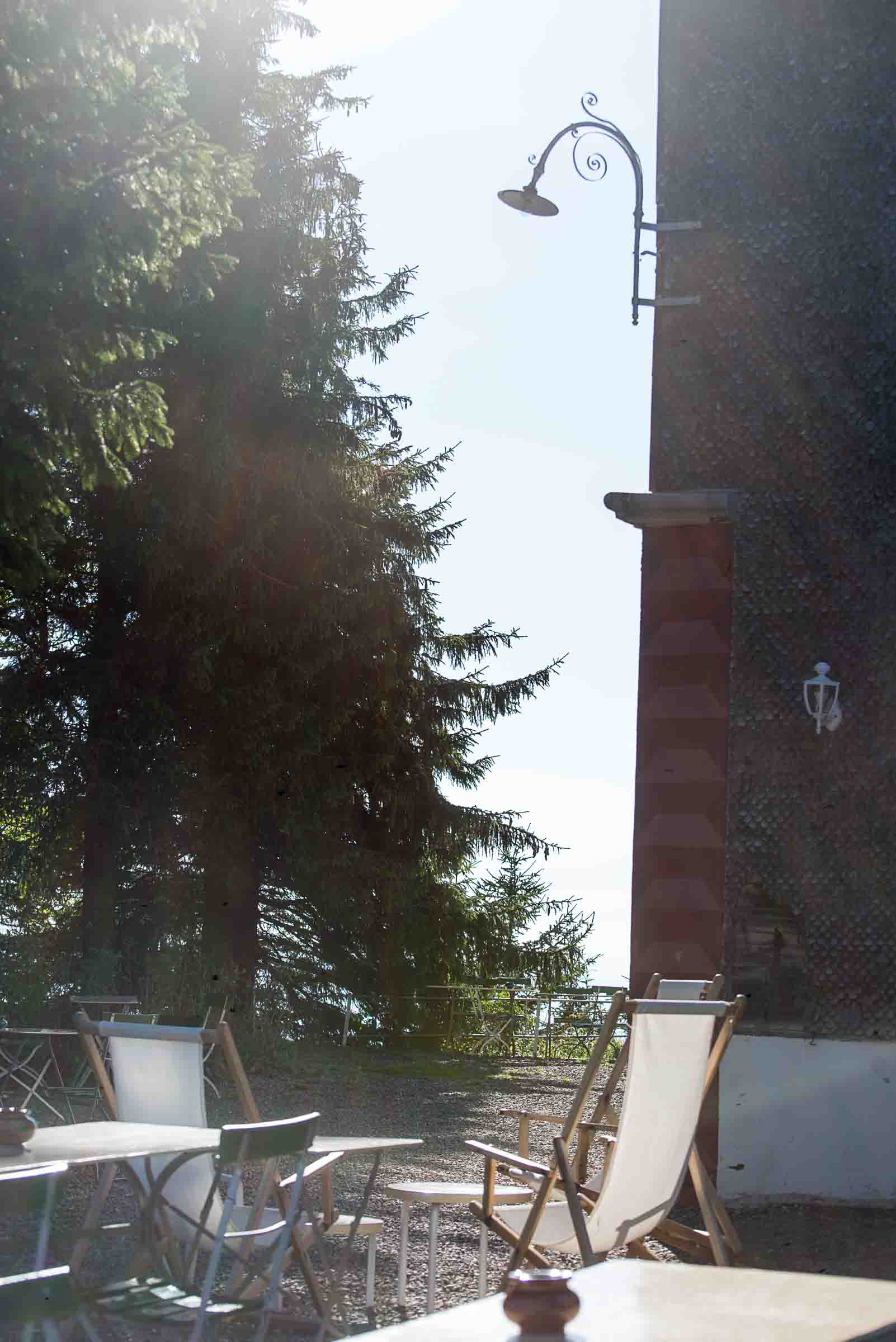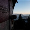 Hinauf gehts bis zum Haus, das eigentlich ja keines mehr ist - von Weitem. Es ist jetzt versteckt hinter Bäumen, kaum sichtbar für die Gäste, und wird bald verschwunden und entsorgt sein. Früher sass ein Mann auf der Bank und winkte den Vorbeifahrenden.
