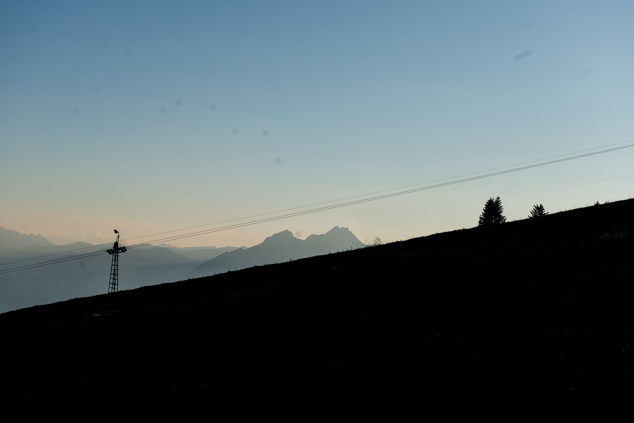 22.22 kann man einfach merken. Um diese Uhrzeit startet der Zug. Und in welche Richtung? Hinauf zum blauen Himmel natürlich. Mit der Tageskarte kannst du rauf und runter fahren. Pauschal, wie ein GA. Um diese Zeit fährt doch keiner mehr hinauf. Oh doch.
