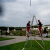 Am Dienstag vor dem Wettbewerb reiste die Crew mit Zug, Auto und Anhänger nach Hannover. Die Tage bis Samstag waren intensiv: Aufbau, Tests, Abstimmungen mit dem Veranstalter. Die Hitze stieg auf über 30 Grad – die Abschusseinrichtungen wurden vorsorglich mit Plastik abgedeckt.
