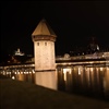 Zu Testzwecken wird die Kapellbrücke während zwei Nächten vom Team "Partikel Plan" ins richtige Licht gerückt. Die wenigen Fussgänger die noch unterwegs sind, scheinen der neuen Lichtinszenierung wenig Beachtung zu schenken.