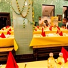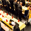 Vor dem grossen Einmarsch werden alle Details geprüft. Der Weibel hilft natürlich. Die Gäste sitzen, noch fehlen die Fasnachtsgewaltigen. Einmarsch mit Weibel und Bannerherr und Musik. Falls kein Fähndrich da ist, dann schreitet der Chef (LFK-Präsideten) gleich mit vier Bannerträgern in den Schalander ein. Man gönnt sich etwas.