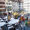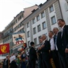 Die nächste Station ist dann wirklich bald erreicht, der Mühlenplatz. Hier endlich werde ich dem neuen Präsidenten vorgesellt. Der Weibel wird eingekleidet. Und hier findet der Apero für die vielen Zaungäste statt.