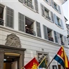 vor der Jesuitenkirche inkl. Apero. Touristen die vorbeiziehen und Einheimische die unsere Chipsli wegschmausen. Hoffentlich reichts für die über 40 aktiven Delegierten, die erwartet werden. Für Nachschub ist gesorgt, der Bierwagen Eichhof, dieses Jahr 100 Jahre jung und mit flotten 29 km/h pro Stunde noch unterwegs, hat noch einige Fässli auf der Ladebrücke für die durstigen Kehlen. Und das Photosujet, alle wollen abgelichtet werden, auch die beiden Weibel in den blauen Gewändern.