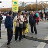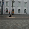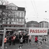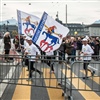 Und so stolzieren sie am Schwanenplatz um die Kurve inkl. Fahne.
